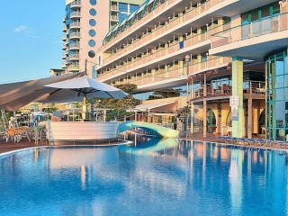 Hotelul Park Odessos este situat in zona centrala a statiunii, intr-un frumos parc natural, cu acces rapid la plaja si la zona comerciala a statiunii.