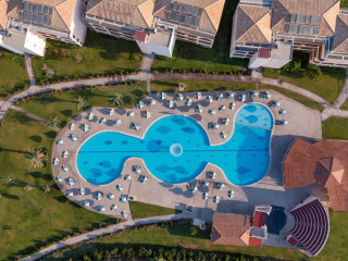 The hotel land is about 30.000m2 and the 22.000m2 are gardens, swimming pool and common areas. The hotel land end on the sea side which allow us to have an almost private beach of about 4.000m2 area...
