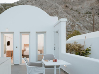 Set in a quiet location with an attractive pool area and a small garden with a view towards one of the islands many blue and white churches and the mountain of Mesa Vouno with of Ancient Thira