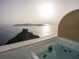 Perched on the cliff of the cadera, close to Fira, the islands capital, with the busy streets, and the exciting nightlife yet secluded from the visitors crowds, offering a serene atmosphere with panor...