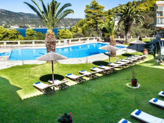 Acest hotel din Skiathos, situat in zona cu vegetație luxuriantă, Punta, oferă camere cu vedere la mare și la port. Oaspetii au la dispoziție o plajă privată si o piscină, ambele cu sezlonguri si u...