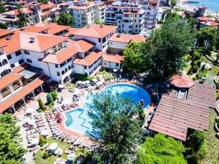 Localizare : Situat la 150 de m de plaja si impreuna cu Hotelul Royal Palace Helena Sands se intinde pe o suprafata de cca 14.000 mp, la 2,5 km de centrul statiunii Sunny Beach Facilitati hotel:...