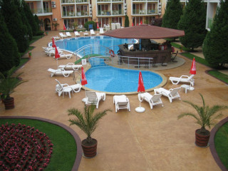 Localizare : este situat in partea de nord a statiunii Sunny Beach, la 150 de metri distanta de plaja Facilitati hotel : Receptie 24/24, sala de conferinte, loc de joaca pentru copii, salon de inf...