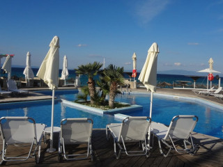 The seafront location of this hotel and the fantastic sea view from the garden and the rooms makes it difficult for the onlooker to distinguish where the blue of the resort pool ends and where the Ion...