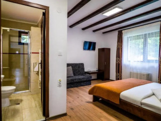 Toate cele 15 camere au grup sanitar propriu, cablu-tv, wirelles, incalzire proprie. Pensiunea este dotata c...