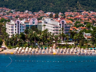 Se spune ca nu ai experimentat frumusetea Turciei cu adevarat daca nu ai fost in Marmaris. Situat in sud vestul Turciei, intr-un minunat golf, cu iesire la Marea Egee si Marea Mediterana, Marmaris te uimeste din prima clipa cu privelistile extraordinare ce intrepatrund marea linistita cu muntele falnic, palmierii maiestuosi si plajele nisipoase perfecte pentru o zi de relaxare. Herodot a consemnat acest oras ca unul dintre cele mai importante porturi din Turcia, acest lucru fiind valabil si astazi, odata cu ambarcatiunile pe care le poti observa la o plimbare lina prin Marmaris. Marea curata, marginita de plaje nisipoase ofera turistilor posibilitatea de practicare a sporturilor nautice precum scufundari sau inot. Marmaris beneficiaza de multe atractii naturale si istorice, dar si de numeroase zone de divertisment si relaxare precum restaurante de lux cu mancaruri extraordinare, magazine, bazare, baruri sau cluburi, viata de noapte fiind una foarte activa printre turisti. Nu in ultimul rand, unitatille hoteliere se deosebesc prin eleganta, calitatea conditiilor de cazare si facilitatile minunate oferite turistilor din toata lumea. Nu trebuie sa ratati un sejur de vis in frumoasa destinatie! Cu familia si prietenii alaturi vei avea vacanta mult dorita!