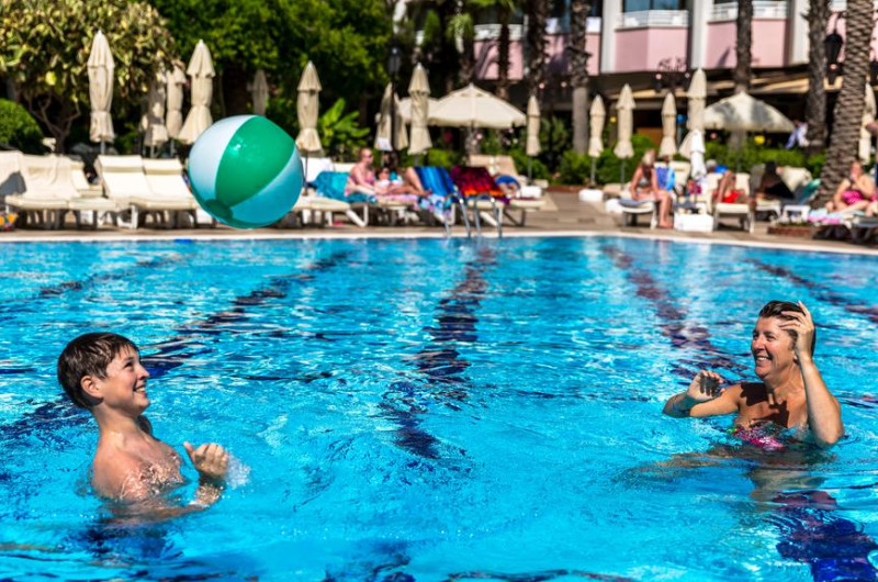Aqua Hotel este un complex de 5 stele care se află pe malul mării, în Icmeler, și oferă plajă privată, piscină în aer liber și piscină interioară. Facilitățile de la Aqua Hotel includ sală de fitness și teren de tenis. Pentru petrecerea timpului liber oaspeții au la dispoziție activități de agrement pe timpul zilei și programe de divertisment seara. Proprietatea are, de asemenea, servicii de recepție cu program non - stop și închirieri auto. Se oferă acces gratuit la internet Wi-fi în spațiile publice. Parcarea este disponibilă la proprietate gratuit.