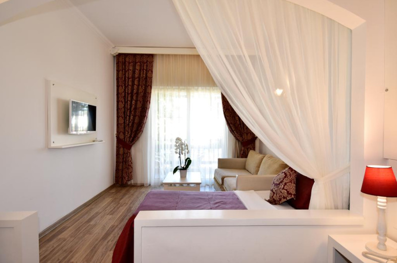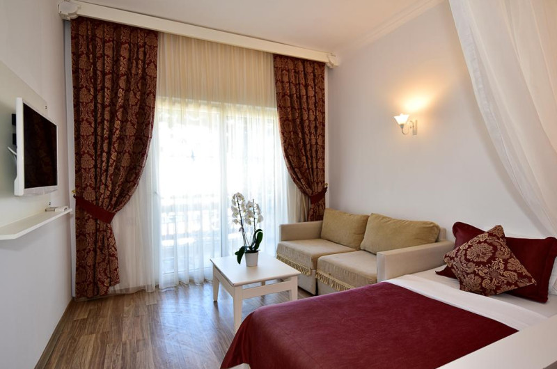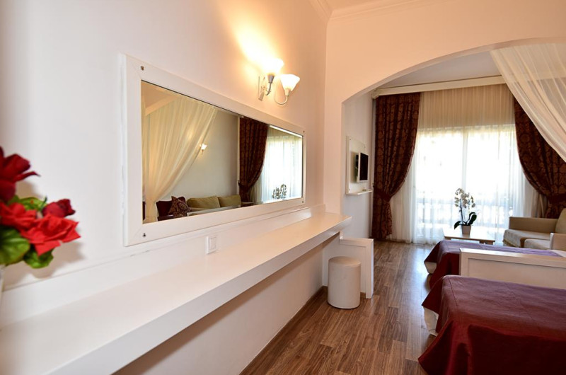 Unele camere au balcon cu vedere la mare sau la piscină. În camere există baie cu cadă sau duș prevăzută cu foehn. Camerele luminoase de la Ayaz Aqua Beach sunt dotate cu parchet, aer condiționat, Tv cu canale prin satelit și seif. Fiecare cameră dispune de minibar. Curățenia in cameră se face zilnic. Proprietatea oferă camere pentru familie cu o suprafață mai mare și un număr mai mare de paturi față de cele standard. Se pot rezerva de asemenea camere pentru nefumători.