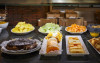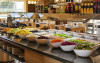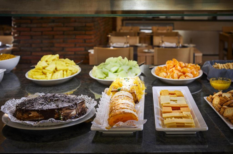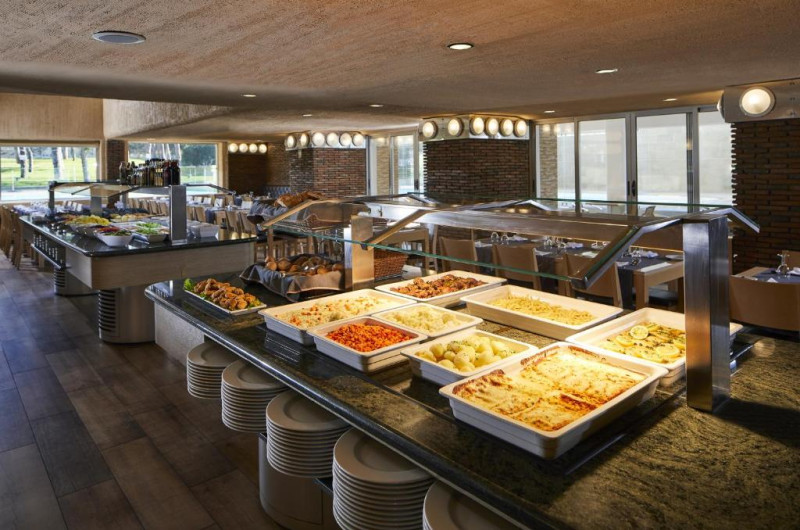 Oaspeții pot savura preparate mediteraneene la Restaurantul Al-Gharb, decorat in stil arab, in timp ce admiră vederea panoramică la piscină. Barul Alambique servește băuturi și gustări, oferind muzică live.