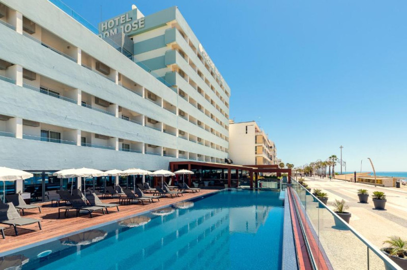 With its panoramic views of the Atlantic Ocean, Dom Jose Beach Hotel is situated directly on Quarteira's beach and offers modern rooms with flat-screen TVs. There is an outdoor pool. The Dom Jose Hotel offers modern air-conditioned rooms with elegant design, wooden furniture and oak floors. All rooms have flat-screen satellite TV, minibar, tea facilities, safety deposit box and a private bathroom with hairdryer and free toiletries. Featuring a panoramic deck, Hotel Dom Jose’s buffet restaurant offers local and international dishes. During the summer months, guests can enjoy a barbecue lunch on the terrace. The hotel offers a private beach area during high season, and the outdoor swimming pool features a wooden deck equipped with sun loungers and umbrellas. The golf courses of Vila Sol and Vale do Lobo Ocean are within 3 km. In addition the hotel includes conference rooms, a gym, massage service and a bar. The nearest bus station is 300 metres away, while Vale do Lobo is 8 km from the property. Vilamoura and its casino are just a 5-minute drive from Hotel Dom Jose and Faro International Airport is a 20-minute drive away.
