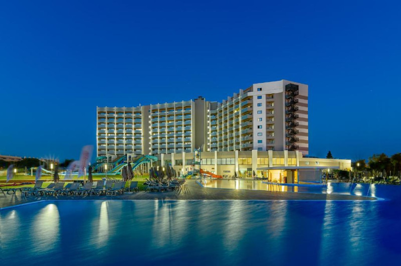 Hotelul Jupiter Albufeira - Family & Fun - All Inclusive, renovat, de 5 stele, este situat in zona liniștită Montechoro, la 10 minute de mers cu mașina de plaja Oura și de centrul orașului Albufeira. Acesta oferă un parc acvatic, mai multe piscine in aer liber, un centru spa și un program all inclusive excelent.