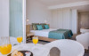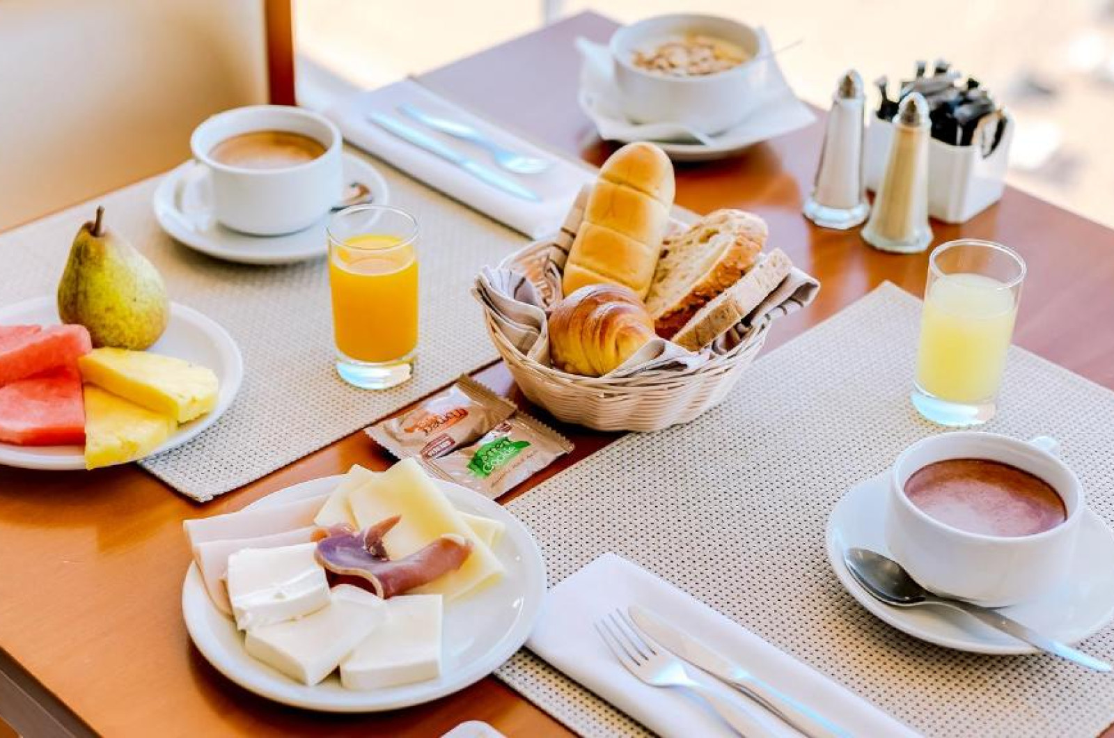 Restaurantul Sunrise oferă bufete generoase și are vedere la mare, iar restaurantul Sunset servește mancăruri à la carte din bucătăria regională și internațională. Complexul oferă un cocktail bar, o gelaterie și un program de divertisment live in timpul serii.