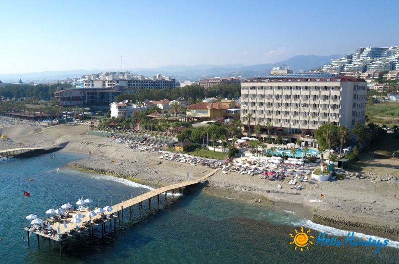 Hotelul este localizat pe coasta Marii Mediterane, cu o vedere la mare uimitoare care se poate vedea din majoritatea camerelor. Acesta se afla in prima linie, a fost construit in anul 1991 si reconstruit in 2006. Hotelul pune la dispozitie 120 de camere in care turistii sa se poata relaxa si bucura de vacanta.