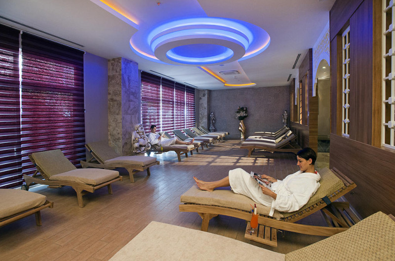 Din facilitățile oferite de proprietate nu lipsește centrul de wellnes și spa, unde oaspeții se pot relaxa la masaj, saună sau la baia cu aburi. Baia turcească face parte din oferta variată de servicii pe care le propune centrul spa. În cadrul proprietatății există piscină interioară pentru lunile mai reci sau pentru zile toride, precum și piscină exterioară unde oaspeții se pot relaxa și bronza în voie. Piscina exterioară este prevăzută cu șezlonguri confortabile, prosoape și umbrele de soare, precum și cu un bar unde oaspeții pot degusta băuturi alcoolice sau răcoritoare. Crystal Sunset Luxury Resort & Spa dispune de aqua park, ceea ce oferă un plus de amuzament copiilor, dar și adulților.