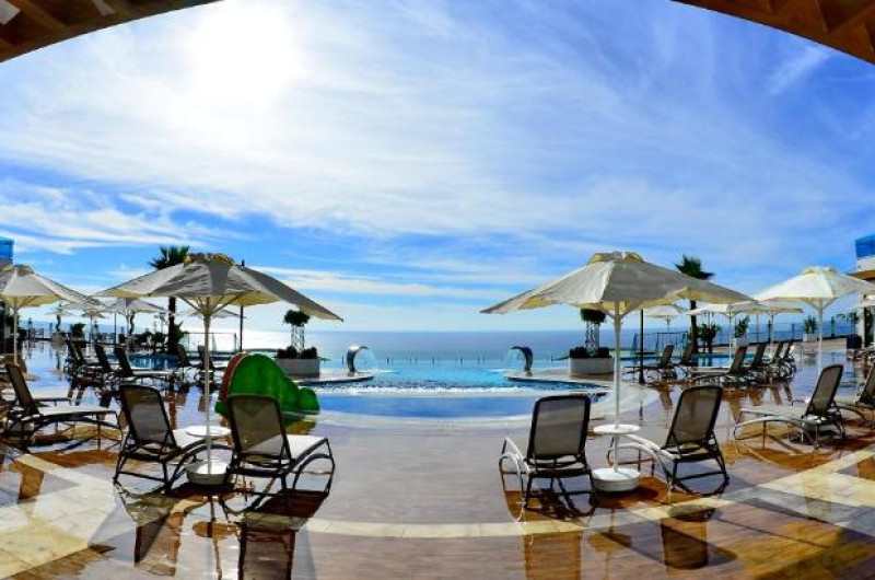 Zona încăpătoare cu piscine cu 2 piscine în aer liber promite odihnă și împrospătare. În zilele răcoroase poate fi folosită piscina acoperită. Copiii se pot bălăci în unul din cele 2 bazine cu apă de mică adâncime. Relaxare agreabilă în cada cu hidromasaj (gratuit), distracție pe toboganul de apă și băuturi răcoritoare la barul piscinei – clienții vor descoperi cât de mult se pot distra în apă. O terasă însorită invită la zăbovit. Locul de cazare oferă un program cuprinzător de sport în aer liber cu ciclism/ciclism montan, minigolf și jogging, precum și cu plată - tenis, volei și baschet. Locul de cazare oferă mai multe posibilități de a practica activități sportive în interior, ca de exemplu o sală de fitness, tenis de masă, biliard, un joc de darts și aerobic, iar contra cost squash. Locul de cazare propune diverse terapii în zona de relaxare, printre care o saună și o baie de aburi, și, contra unei taxe suplimentare - un spa, un hamam, un salon de înfrumusețare și terapii prin masaj. Un miniclub și muzică live oferă divertisment și distracție în timpul liber. Copyright GIATA 2004 - 2023. Multilingual, powered by www.giata.com for client no. 128259