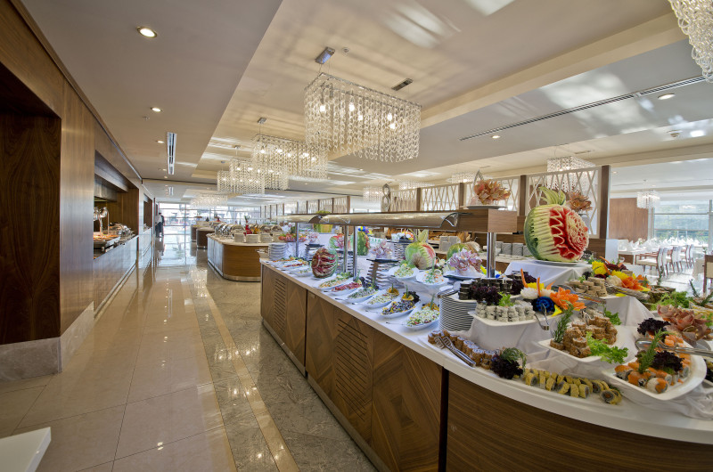 Locurile unde se poate lua masa cuprind un restaurant, o cafenea și un bar. Băuturile răcoritoare de la barul de pe plajă creează momente minunate. La centrul de cazare se oferă spre rezervare All-Inclusive-Special. Un mic dejun bogat de la bufet (și pentru cei ce se trezesc devreme și pentru cei ce dorm pană mai tarziu) motivează dimineața la trezit. Dimineața și seara clienții se servesc la bufet. De asemenea, unitatea de cazare pune la dispoziție gustări. Hotelul oferă un sortiment de băuturi alcoolice și nealcoolice.