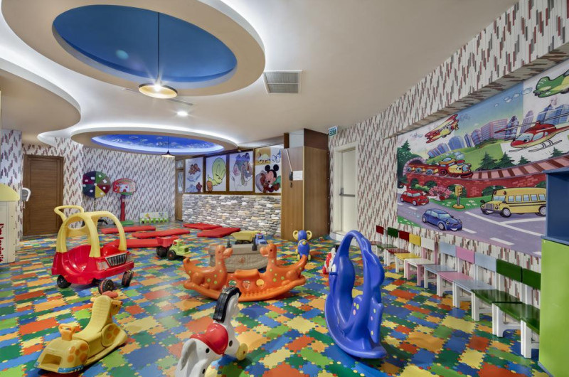 Proprietatea este o alegere potrivită pentru familiile cu copii. Cei mici se pot distra în aer liber la piscina pentru copii, prevăzută cu tobogan cu apă sau în locul de joacă special amenajat. Pentru orele toride cei mici pot opta pentru clubul amenajat la interior, unde există jocuri și programe de animație. Copiii au la dispoziție canale TV, cărți și DVD-uri. Pentru cei mai mici Granada Luxury Okurcalar oferă cărucioare și servicii de babysitting.