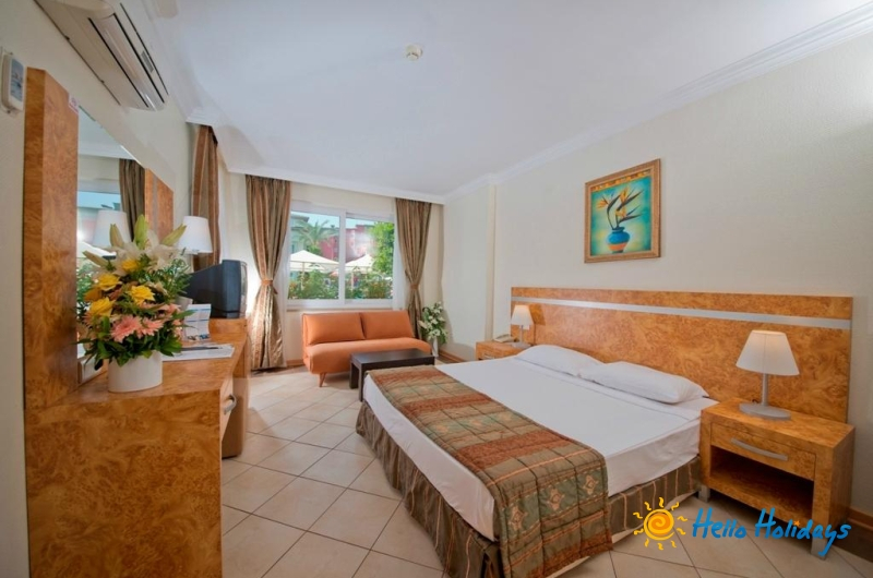 The 345 rooms, including 307 double rooms, have a pleasant, inviting atmosphere. 30 villas/houses offer even more space and comfort. The friendly staff at the reception desk in the lobby are happy to answer any questions. Amenities include a safe and a currency exchange service. Wireless internet access is provided in public areas. A variety of shops are available, including a supermarket. The grounds of the hotel feature a playground and a lovely garden. Additional amenities include a TV room, a playroom and a library. Guests arriving by car can park their vehicles in the car park. Further services and facilities include a babysitting service on request, a childcare service, medical assistance, room service (for a fee), an alarm call service, a laundry service, a hairdresser and a hotel doctor.Datorita dinamicitatii domeniului disponibilitatea ofertelor se modifica de la un moment la altul. De aceea ofertele sunt valabile in limita locurilor disponibile. Agentia nu este responsabila pentru eventualele neconcordante care pot aparea intre informatiile privind tarifele si alte detalii din site si informatiile primite in agentie. In aceste cazuri vor avea prioritate, intotdeauna, informatiile primite in agentie.