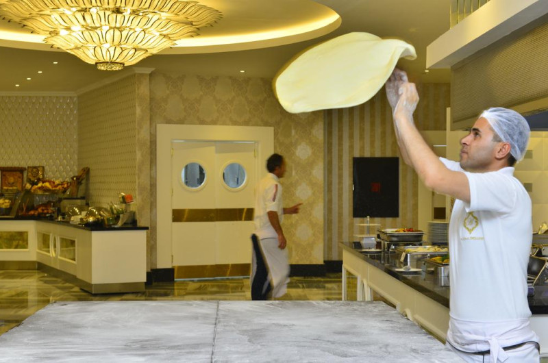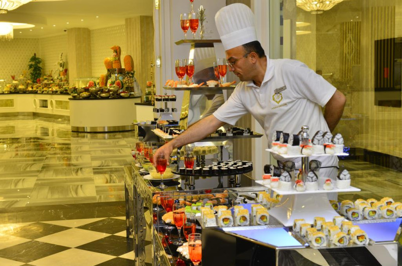 La Azura Deluxe Resort & Spa Hotel oaspeții au la dispoziție 5 restaurante unde pot savura mâncăruri delicioase, în stil bufet sau à la carte. Preparate din bucătăria internațională, turcească, italiană și mexicană propun mâncăruri pentru gusturi diverse. Masa poate fi servită atât în interior, cît si în aer liber, pe terasă, în funcție de vreme. 3 baruri sunt disponibile cu o ofertă variată de băuturi răcoritoare și alcoolice. În cadrul proprietății există și un snack bar care servește băuturi și gustări. Pentru cei cu anumite nevoi de nutriție, Azura Deluxe Resort & Spa Hotel oferă meniuri pentru diete speciale.