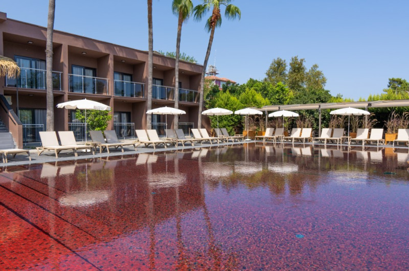 Amplasat pe un teren plin de palmieri, cu vedere la dealurile din jur, acest hotel relaxat all-inclusive aflat in afara drumului D400 se află la 5 minute de mers pe jos de cea mai apropiată plajă din Marea Mediterană și la 42 km de Aeroportul Antalya.