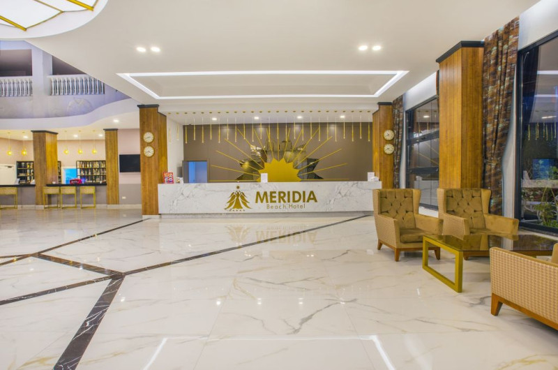 Meridia Beach Hotel este un complex de 5 stele care se află pe malul mării, în Alanya (Antalya), și oferă plajă privată, piscină în aer liber și piscină interioară. Facilitățile de la Meridia Beach Hotel includ și sală de fitness. Pentru petrecerea timpului liber oaspeții au la dispoziție activități de agrement pe timpul zilei și programe de divertisment seara. Proprietatea are recepție cu program non - stop, unde clienții sunt întâmpinați cu ospitalitate în orice moment al zilei. Se oferă acces gratuit la internet Wi-fi în spațiile publice. Parcarea este disponibilă la proprietate gratuit.