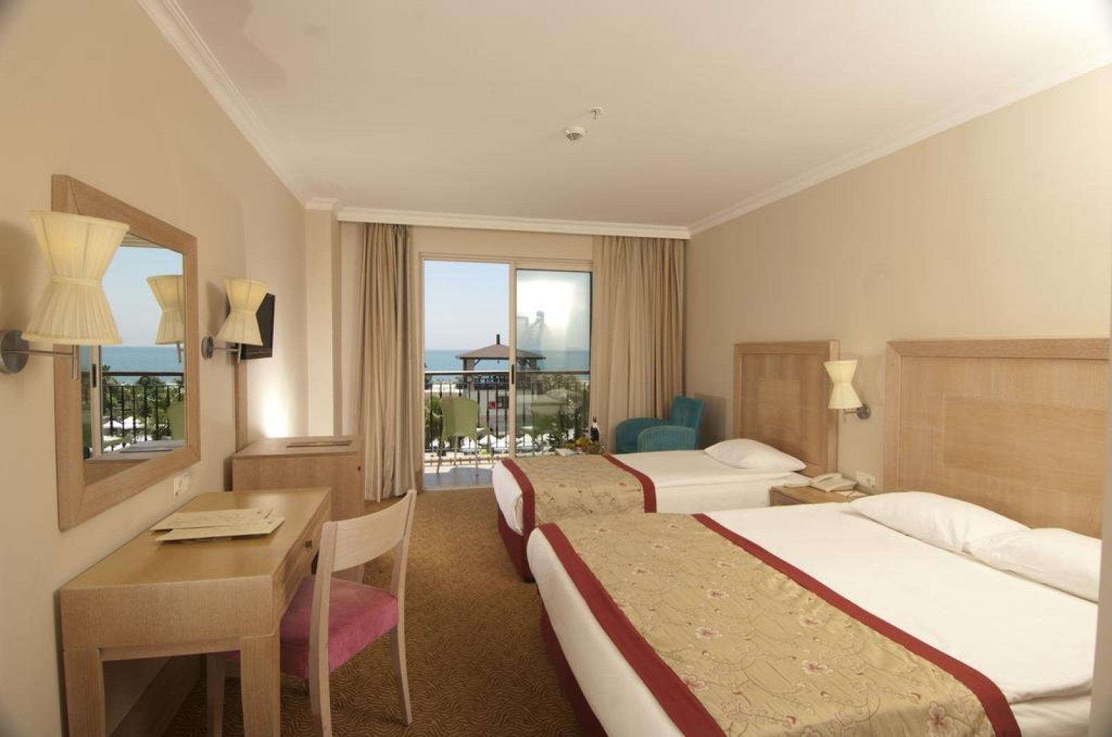 Camerele hotelului sunt dotate cu: mini bar (la sosire cu apa si bauturi racoritoare; se reumple zilnic doar cu apa), telefon, TV satelit, balcon, baie cu cada, uscator de par, aer conditionat, seif, mocheta.