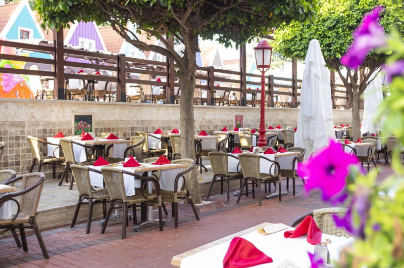La Orange County Resort Hotel Kemer oaspeții au la dispoziție 8 restaurante unde pot savura mâncăruri delicioase, în stil bufet sau à la carte. Preparate din bucătăria locală, internațională, mediteraneeană, italiană, precum și preparate pescărești așteaptă să fie degustate în fiecare zi la micul dejun, prânz și cină. Pizza este de asemenea o opțiune culinară pentru cei gurmanzi. Masa poate fi servită atât în interior, cît si în aer liber, pe terasă, în funcție de vreme. Oaspeţii pot avea diverse băuturi răcoritoare sau alcoolice la bar. De asemenea , în cadrul proprietății, există cafenea și snack bar ideale pentru o gustare rapidă.