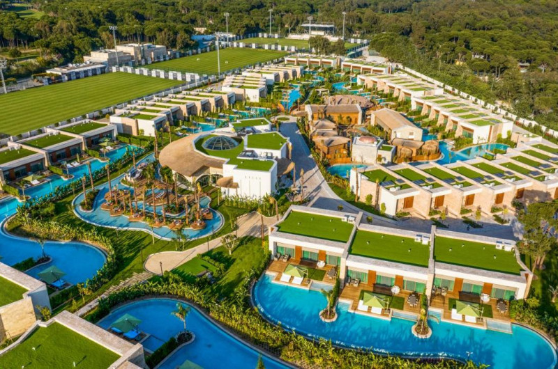 Regnum Carya oferă piscine interioare/in aer liber cu tobogane cu apă, un centru spa luxos cu masaje, saună și baie cu aburi, precum și o plajă privată cu nisip. Hotelul este situat pe terenul de golf Carya.