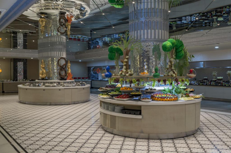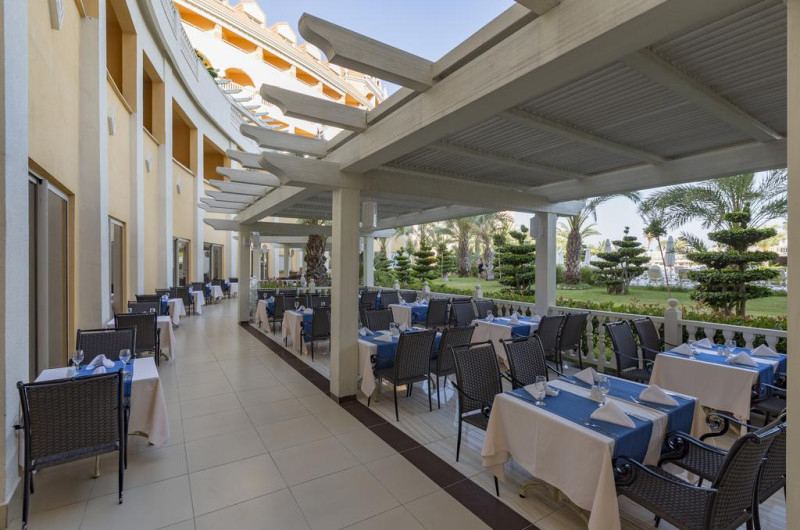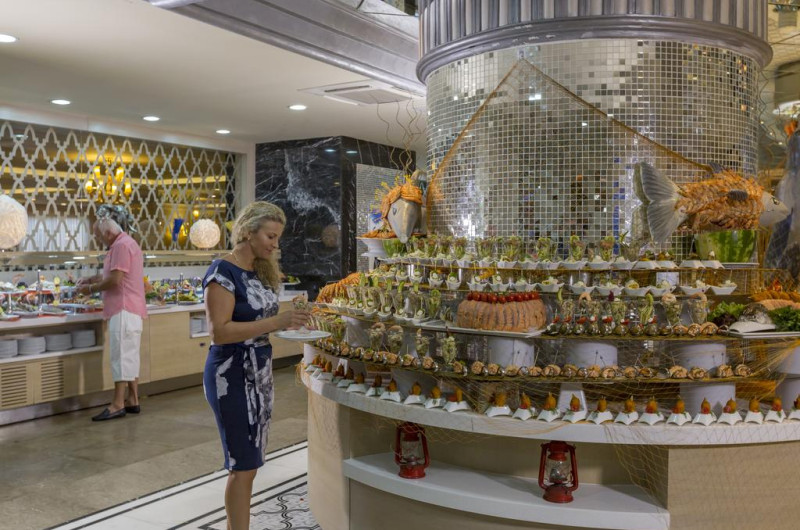 La Royal Alhambra Palace oaspeții au la dispoziție 6 restaurante unde pot savura mâncăruri delicioase, în stil bufet sau à la carte. Preparate din bucătăria internațională, italiană, precum și preparate pescărești așteaptă să fie degustate în fiecare zi la micul dejun, prânz și cină. Masa poate fi servită atât în interior, cît si în aer liber, pe terasă, în funcție de vreme. 7 baruri sunt disponibile cu o ofertă variată de băuturi răcoritoare și alcoolice.