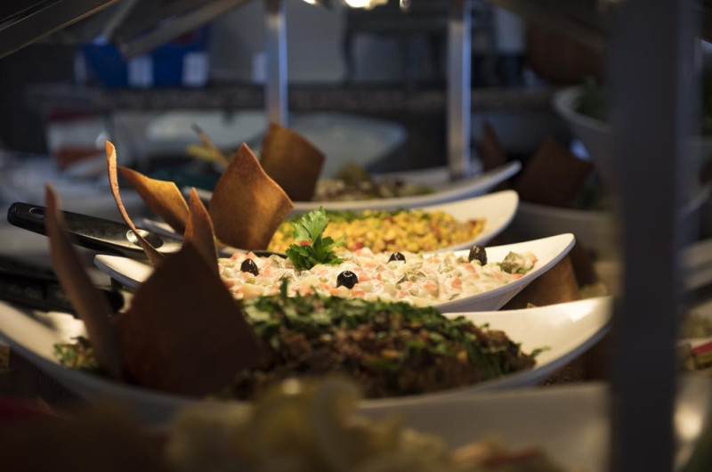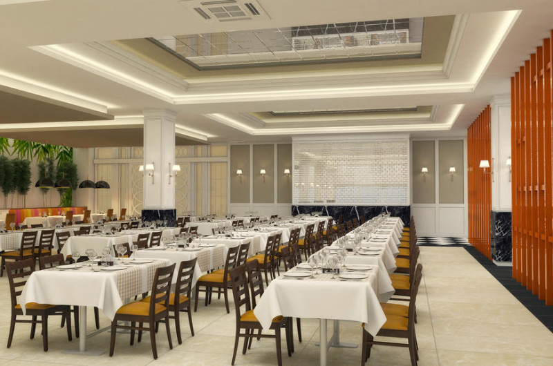 La Royal Garden Beach oaspeții au la dispoziție 5 restaurante unde pot savura mâncăruri delicioase, în stil bufet sau à la carte. Preparate din bucătăria internațională, italiană, precum și preparate pescărești așteaptă să fie degustate în fiecare zi la micul dejun, prânz și cină. Masa poate fi servită atât în interior, cît si în aer liber, pe terasă, în funcție de vreme. 5 baruri, dintre care unul la piscină și unul pe plajă, sunt disponibile cu o ofertă variată de băuturi răcoritoare și alcoolice.