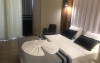 Hotelul Sette Serenity include aer condiționat, dulap, TV (düz ekran), ozel banyo, nevresim takımı, prosoape și balcon cu vedere la mare in fiecare cameră. Toate camerele includ seif.