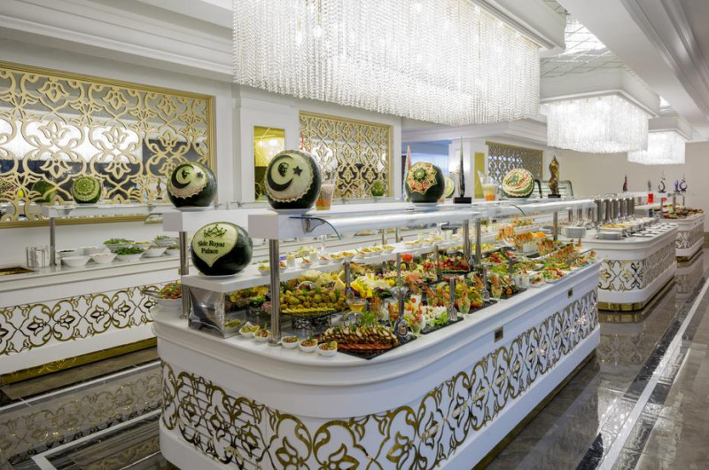 La Side Royal Palace oaspeții au la dispoziție 3 restaurante unde pot savura mâncăruri delicioase, în stil bufet sau à la carte. Preparate din bucătăria internațională și turcească așteaptă să fie degustate în fiecare zi la micul dejun, prânz și cină. Masa poate fi servită atât în interior, cît si în aer liber, pe terasă, în funcție de vreme. 4 baruri, dintre care unul la piscină și unul pe plajă, sunt disponibile cu o ofertă variată de băuturi răcoritoare și alcoolice. Pentru cei cu anumite nevoi de nutriție, Side Royal Palace oferă meniuri pentru diete speciale.