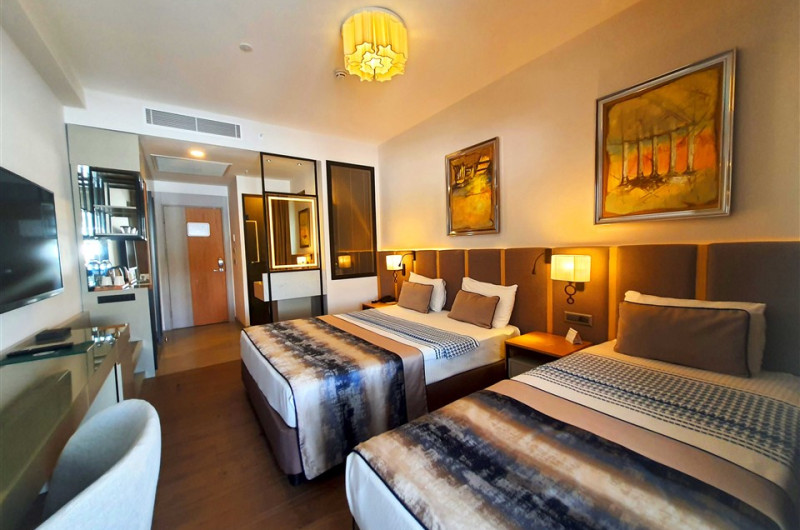 Acest hotel pune la dispoziția oaspeților camere cu aerul, birou, cafetieră, un minibar, cutie de valori, televizor cu ecran plat, balcon și baie proprie cu bideu. Baia proprie oferă un duș, articole de toaletă gratuite și un uscător de păr. La Sunthalia Hotels & Resorts Ultra All Inclusive Adults Only Party Hotel, fiecare cameră oferă lenjerie de pat și prosoape.