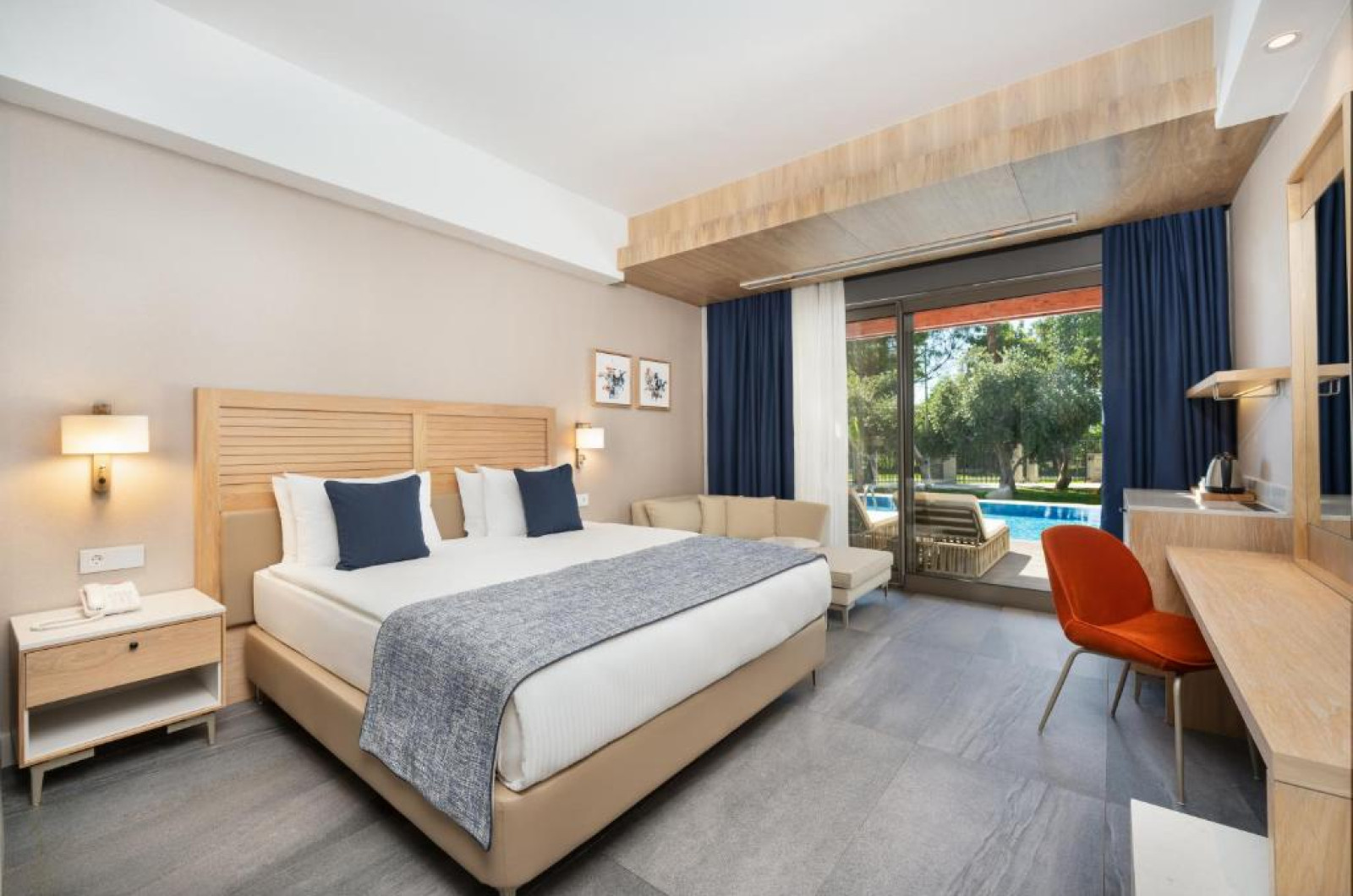 Toate camerele sunt amenajate in nuante delicate de bej si oferă un balcon mobilat. Fiecare include fotolii luxoase, minibar si TV.