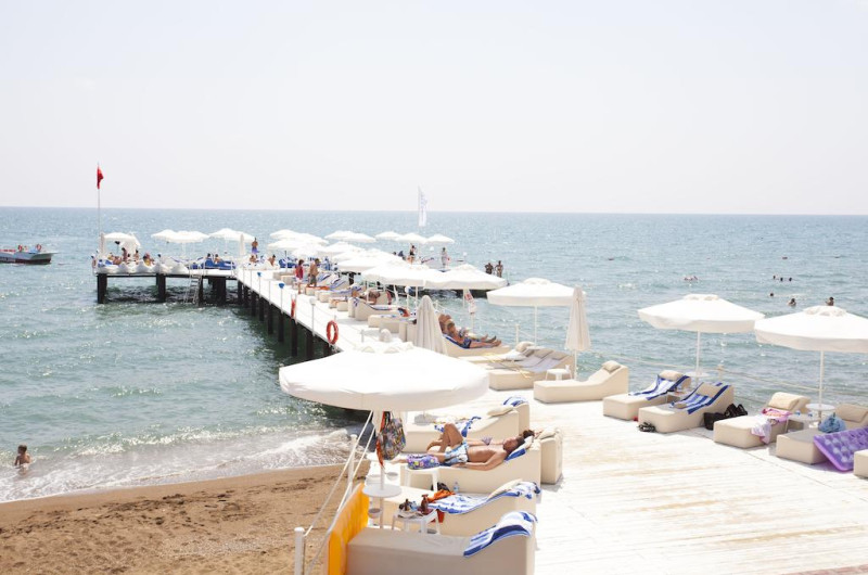 Titanic Beach Lara dispune de plajă privată. Pe plajă există șezlonguri și umbrele de plajă contra cost.