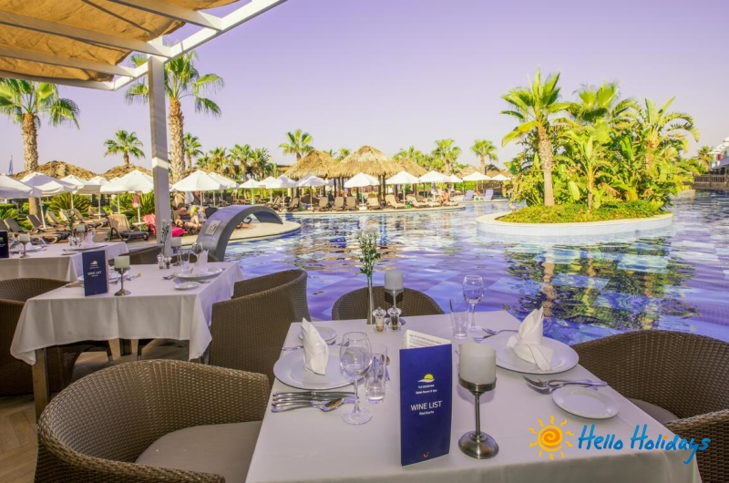 Servicii: All inclusive - tip bufet pentru micul dejun, mic dejun tarziu, pranz, gustari dupa amiaza, prajituri si inghetata intre anumite ore, cina, gustari tarzii, ceai, cafea, toate bauturile locale alcoolice si racoritoare intre orele 10.00 -24.00, restaurante A la Carte cu rezervare in avans si o singura data pe sejur in unul dintre ele, sucuri naturale din fructe numai la micul dejun. Nu sunt incluse in concept: bauturile din import, sucurile naturale de fructe, bauturile imbuteliate, bauturile energizante, room service.