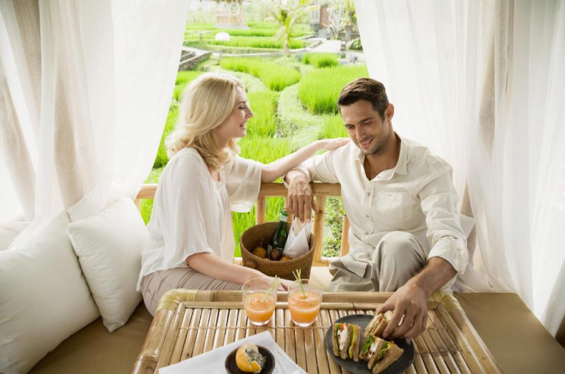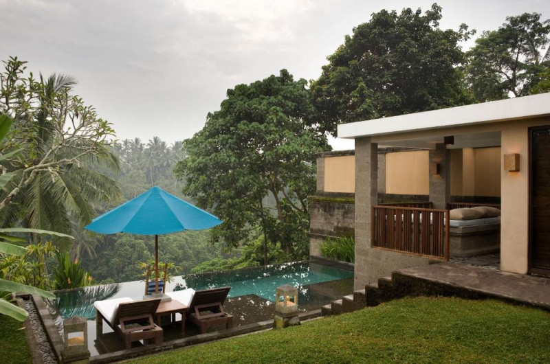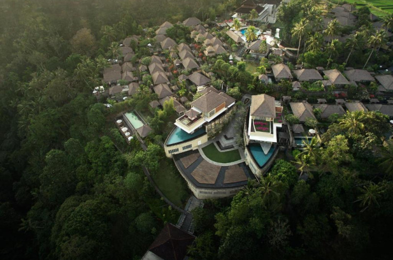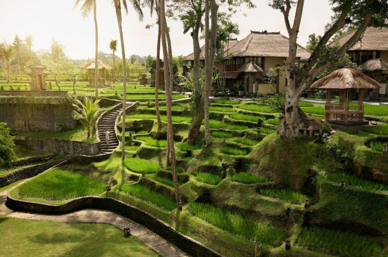 Camerele si vilele au decor inspirat de satele traditionale din Bali și vedere la dealurile și lanurile de orez din jur. Toate unitătile au acoperis din stuf, interioare spatioase si facilităti de 5 stele. Majoritatea au TV cu ecran plat, canapea in stil balinez si piscină privată.
