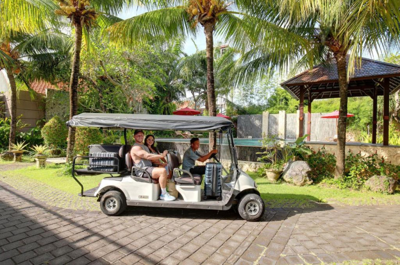Plaja Jimbaran, renumită pentru nisipul său auriu și apusurile spectaculoase, se află la doar cateva minute de mers pe jos. Zona este celebră pentru restaurantele sale de fructe de mare așezate direct pe plajă, unde oaspeții pot savura cina cu picioarele in nisip, sub cerul instelat al Baliului.