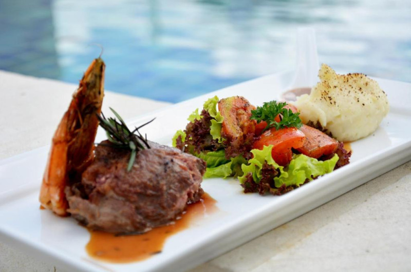 Angsoka Bar & Lounge al hotelului servește o varietate de specialități indoneziene, in timp ce preparate de fuziune americane și asiatice pot fi savurate la Sandekala de pe acoperiș.