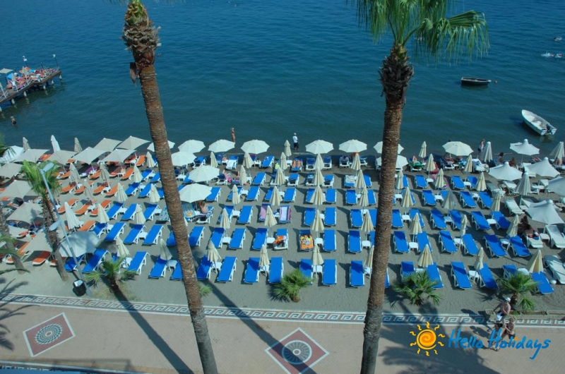 Hotelul este situat la aproximativ 300 m de plaja, la 1 km de centrul orasului Marmaris, iar fata de Aeroportul din Dalaman se afla la 95 km. Pozitia sa este una favorabila, fiind foarte aproape de plaja.
