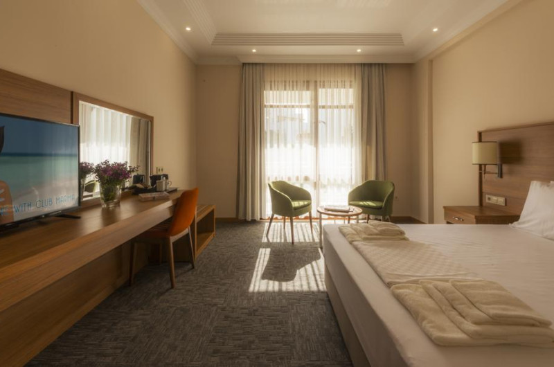 Unele camere au balcon cu vedere la grădină sau la piscină. Camerele confortabile de la Club Marma Hotel au pardoseală de gresie/ marmură, aer condiționat, Tv cu canale prin satelit și seif. Fiecare cameră dispune de minibar și cană-fierbător. Oaspeții pot solicita serviciul de room service pentru a servi masa sau diverse băuturi. În camere există baie cu cadă sau duș ce are în dotare foehn și articole de toaletă gratuite. Oaspeții au acces gratuit la serviciul Wi-fi în camere. Curățenia in cameră se face zilnic.