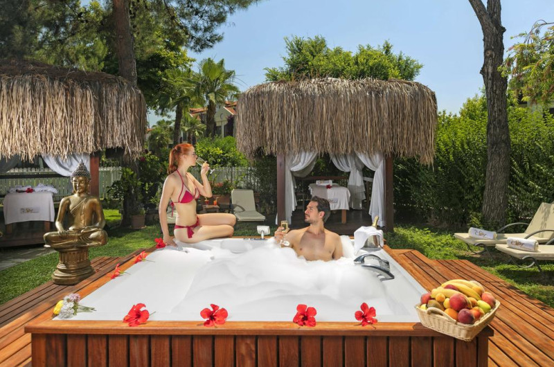 Din facilitățile oferite de proprietate nu lipsesc cele spa, unde oaspeții pot încerca diferite tratamente de înfrumusețare, sau se pot relaxa, la masaj, saună sau la baia cu aburi. Cada cu hidromasaj și baia turcească întregesc oferta variată de servicii pe care le propune centrul spa. Pentru cei interesați proprietatea oferă manichiură & pedichiură, coafor, precum și o întreagă gamă de tratamente faciale pentru toate tipurile de ten. Club Tuana Fethiye dispune de aqua park, ceea ce oferă un plus de amuzament copiilor, dar și adulților.