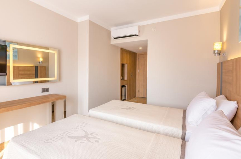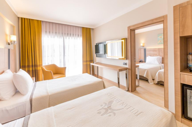 Camerele confortabile de la Julian Marmaris au pardoseală de gresie/ marmură, aer condiționat, Tv cu canale prin satelit și seif. În camere există baie cu cadă sau duș ce are în dotare foehn și articole de toaletă gratuite. Unele camere cu balcon cu vedere la oraș. Fiecare cameră dispune de minibar și cană pentru preparare apă caldă. Oaspeții au acces gratuit la serviciul Wi-fi în camere. Curățenia in cameră se face zilnic. Proprietatea oferă camere pentru nefumători.