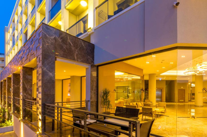 Julian Marmaris este o proprietate care se află în Marmaris, la o distanță de 150 m de plaja Marmaris și oferă unități de cazare cu aer condiționat și terasă în aer liber. Facilitățile de la Julian Marmaris includ și sală de fitness. Proprietatea are recepție cu program non - stop, unde clienții sunt întâmpinați cu ospitalitate în orice moment al zilei. Se oferă acces gratuit la internet Wi-fi în spațiile publice. Parcarea este disponibilă la proprietate gratuit.