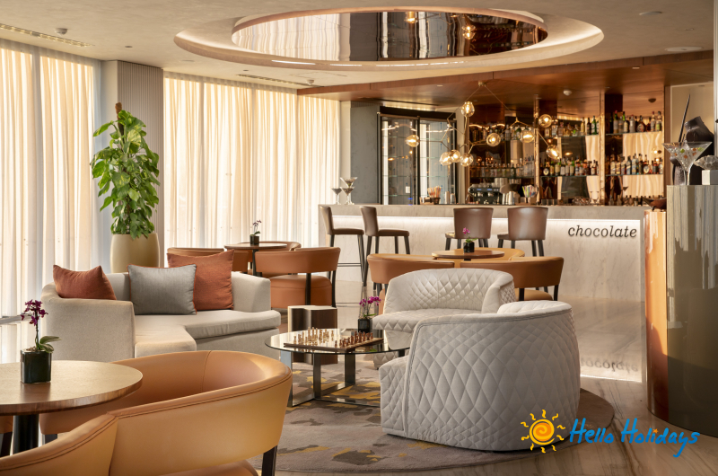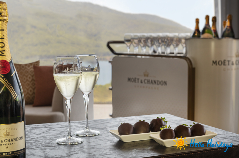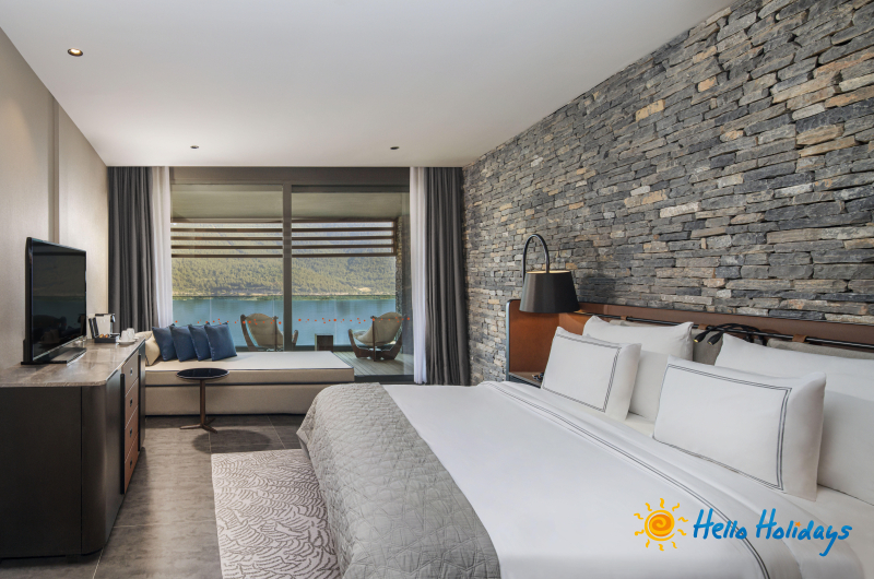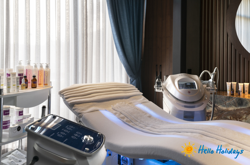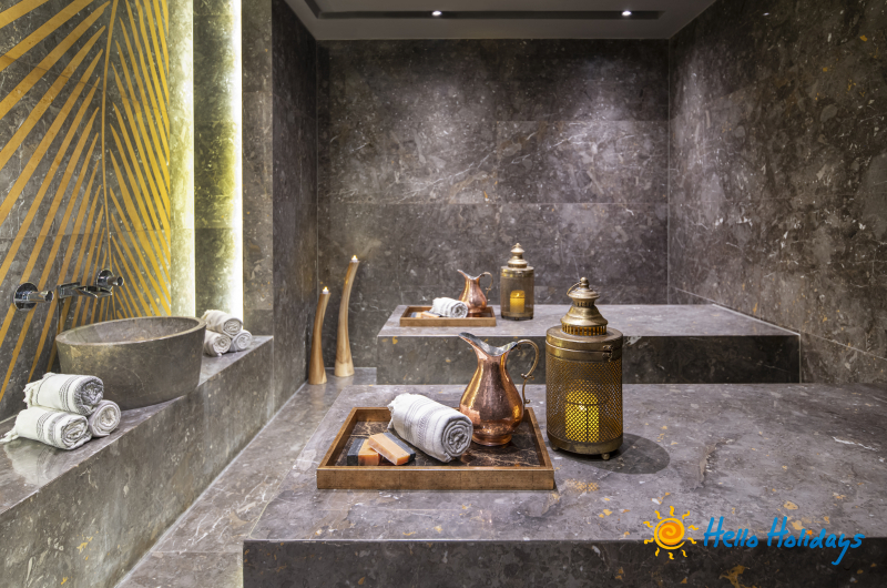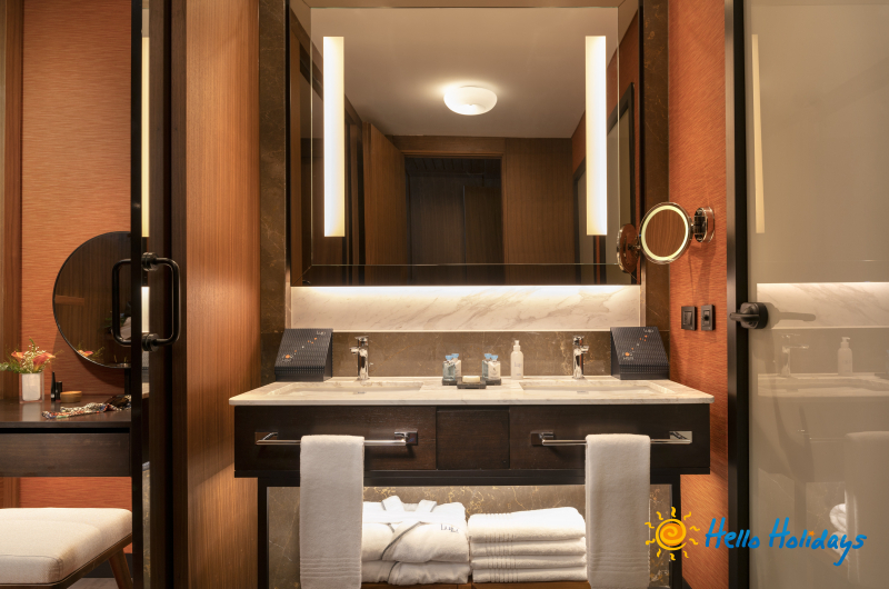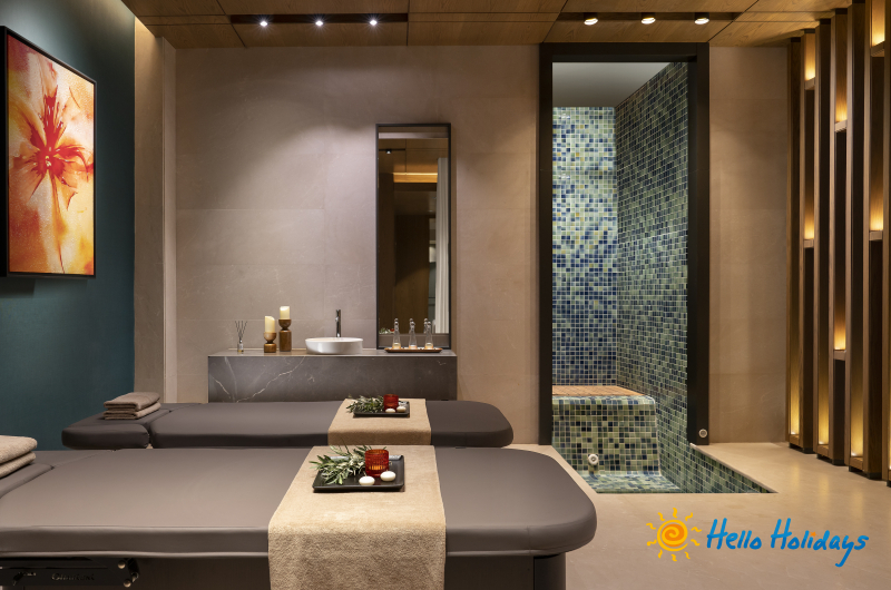 Camerele pun la dispoziția turiștilor aer condiționat, halate și papuci pentru baie, set cosmetice Bvlgari (pentru adulți și copii), băi cu uscător de păr, Tv sistem IPTV, seif, internet Wi-Fi, facilități pentru ceai și cafea, dressing, balcon/terasă.