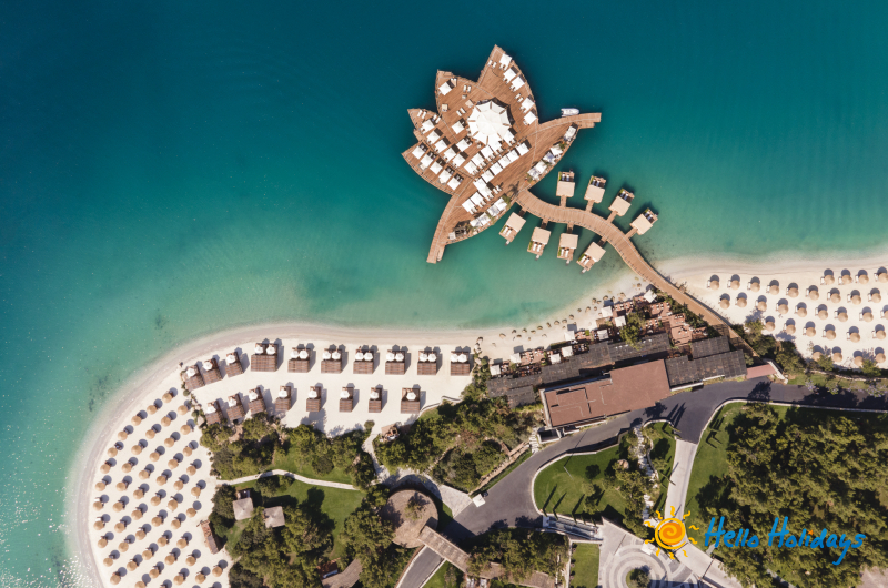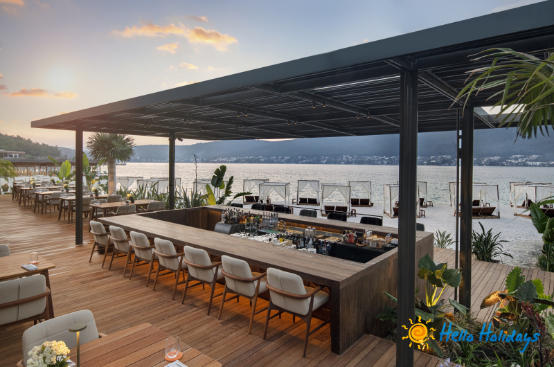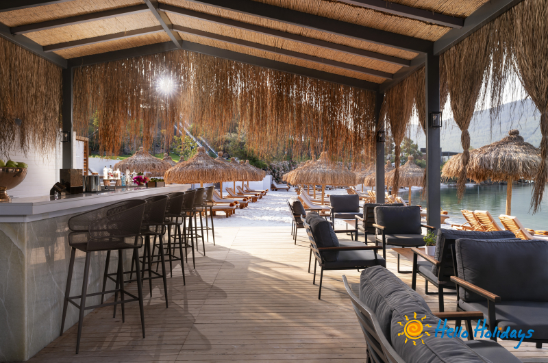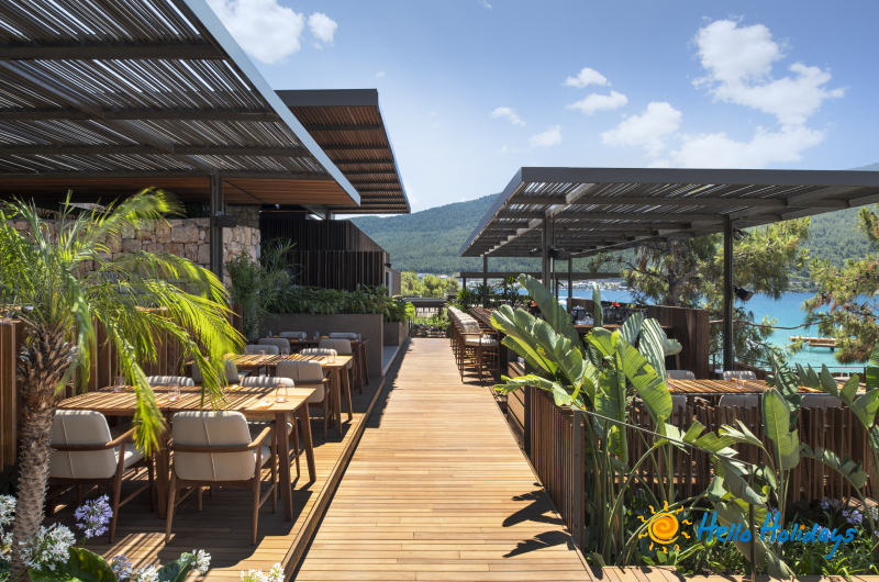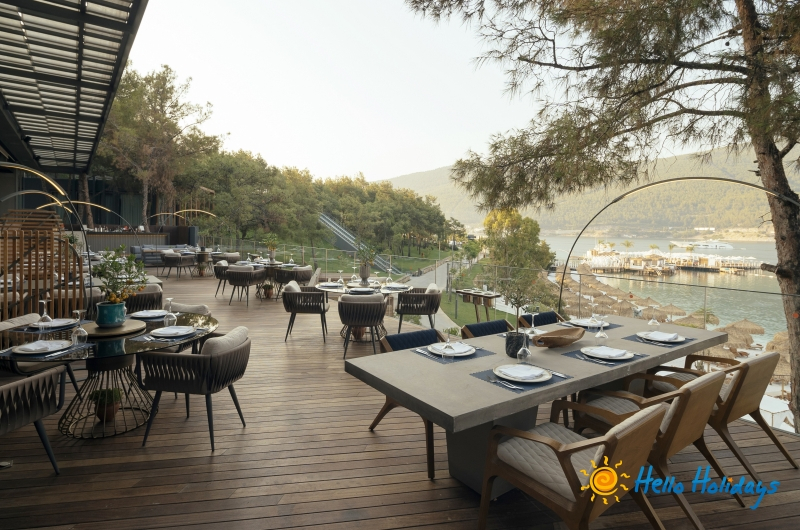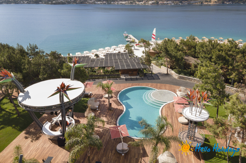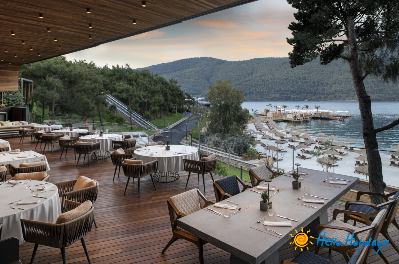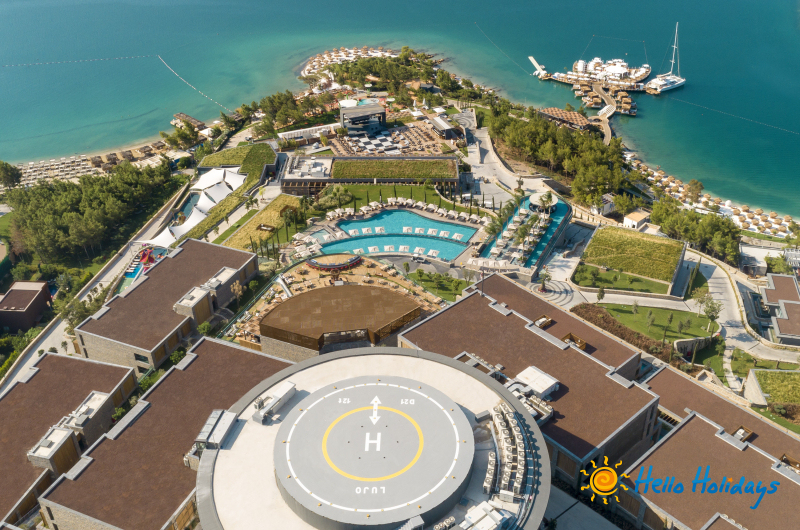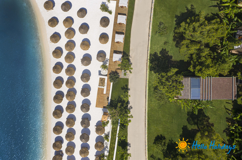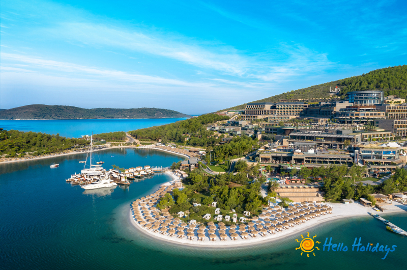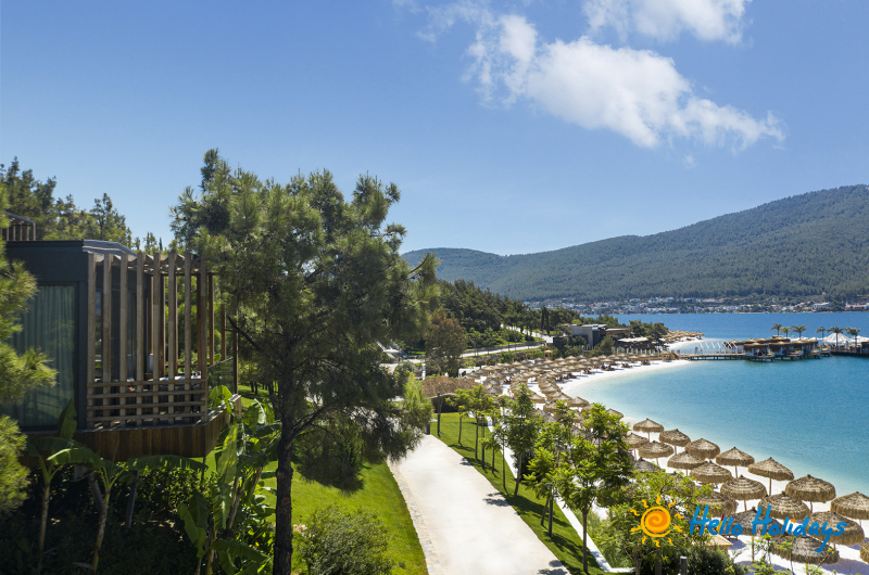 Hotelul este așezat pe o plajă privată deosebită, la o distanta de 20 km de centrul orasului Bodrum si la 15 km deaeroportul Milas.