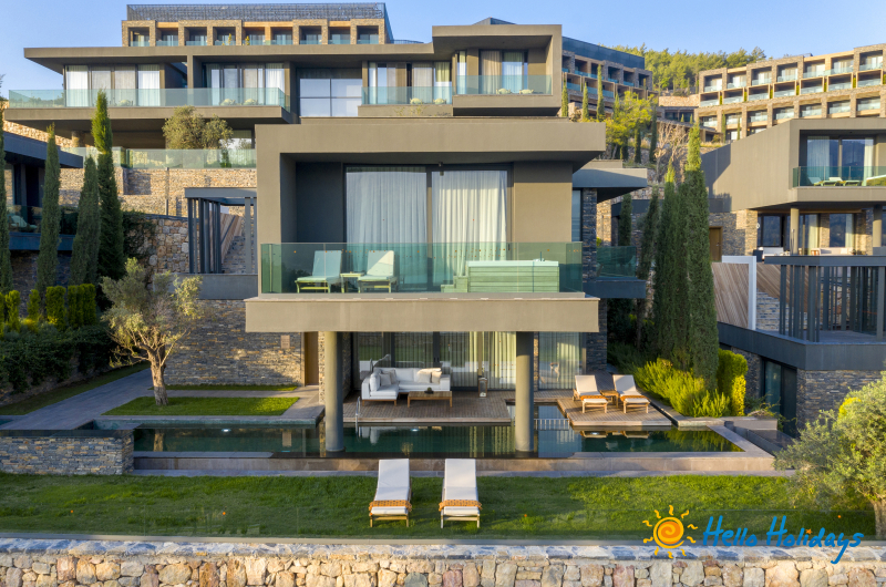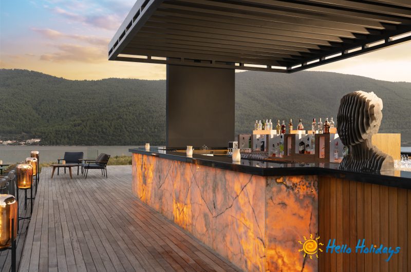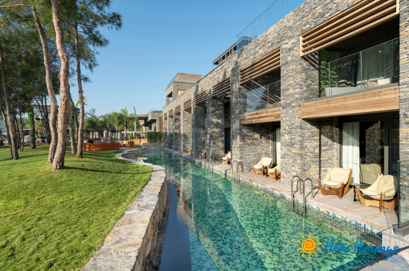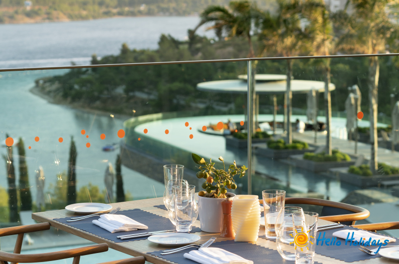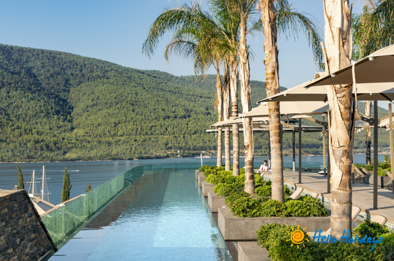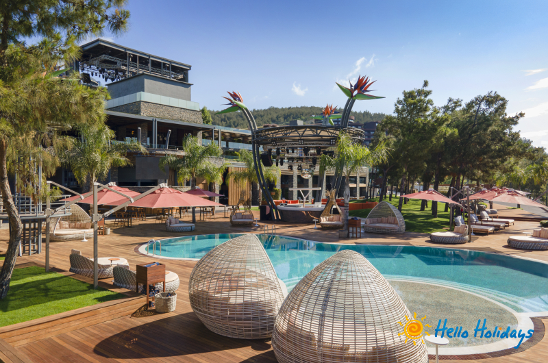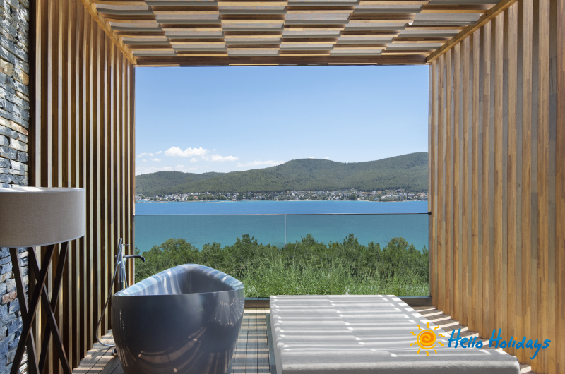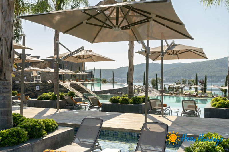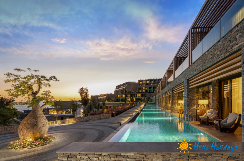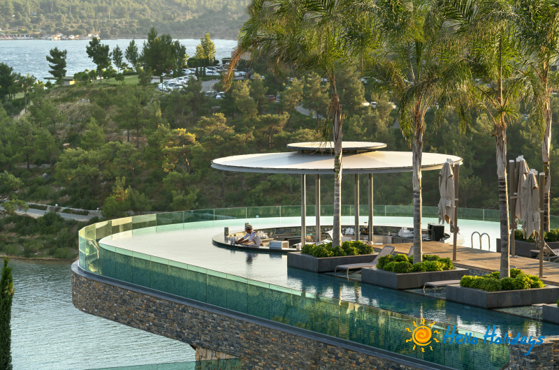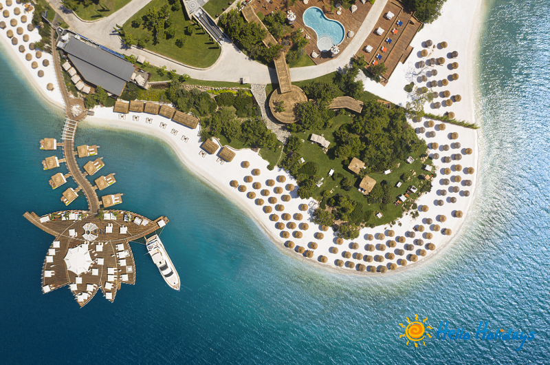Hotelul este așezat pe o plajă privată deosebită, la o distanta de 20 km de centrul orasului Bodrum si la 15 km deaeroportul Milas.