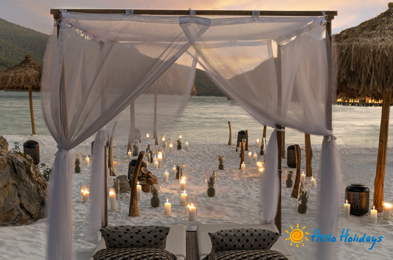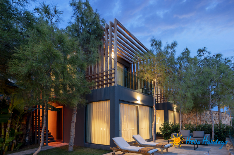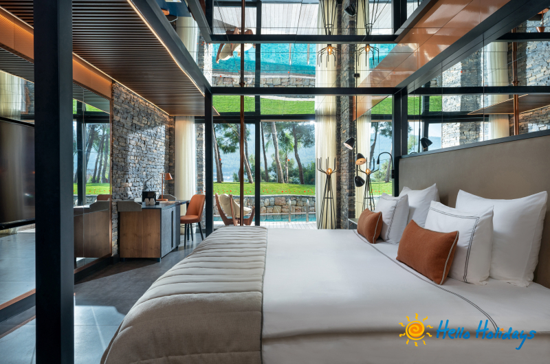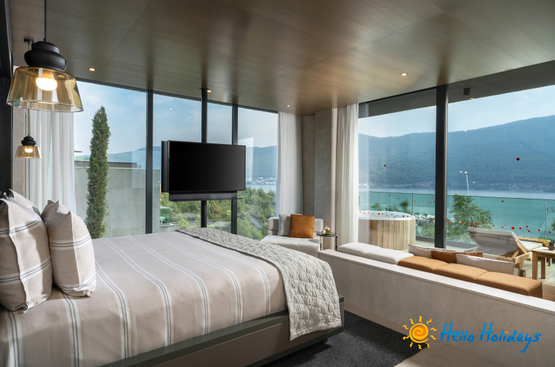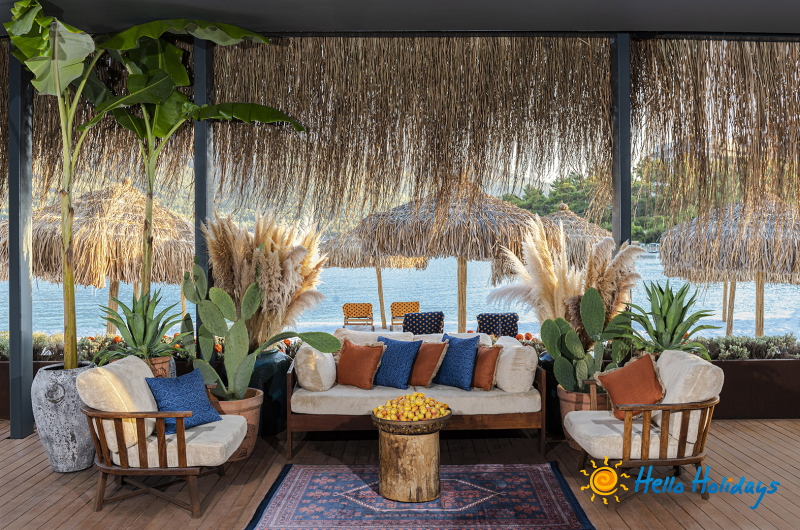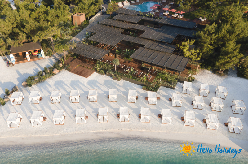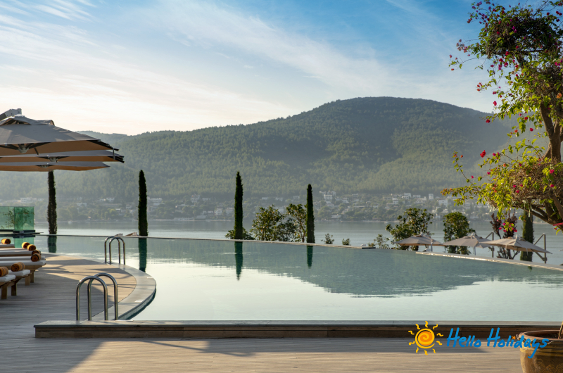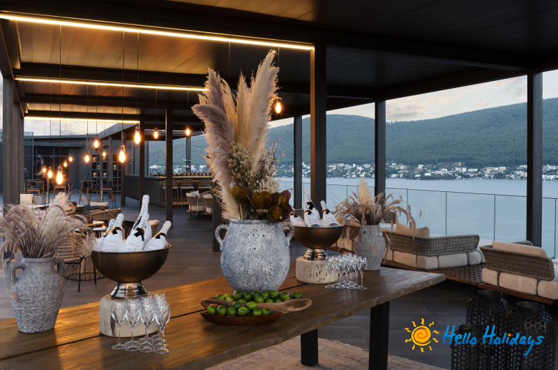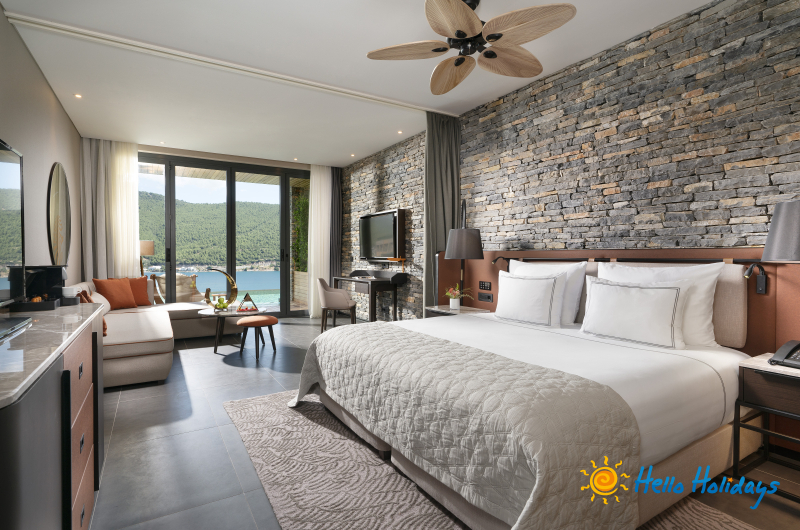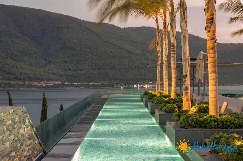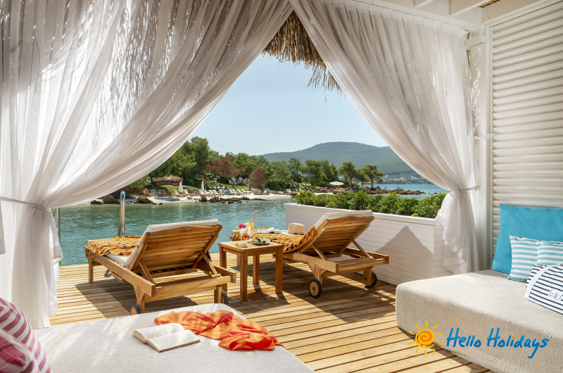Hotelul este așezat pe o plajă privată deosebită, la o distanta de 20 km de centrul orasului Bodrum si la 15 km deaeroportul Milas.