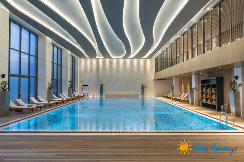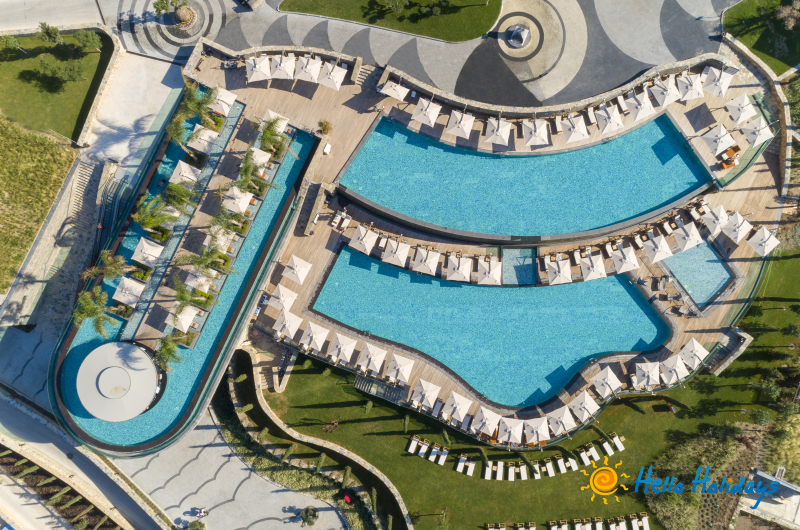 Hotelul dispune de 7 piscine (6 exterioare si 1 interioara; 1 piscina exterioara – doar adulti) + 2 piscine pentru copii (1 exterioara si 1 interioara). *Toate piscinele sunt cu apa proaspata. Incalzirea sezoniera este in aprilie-mai si octombrie.
