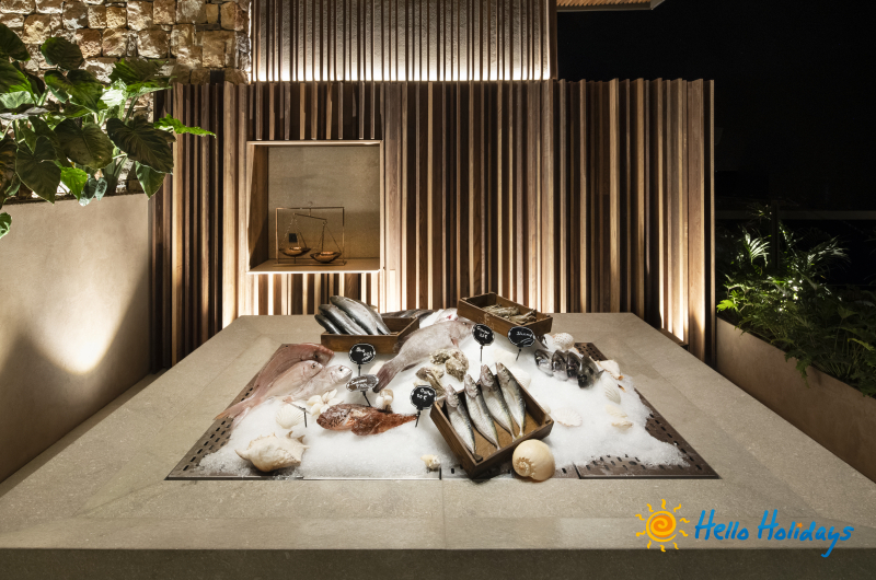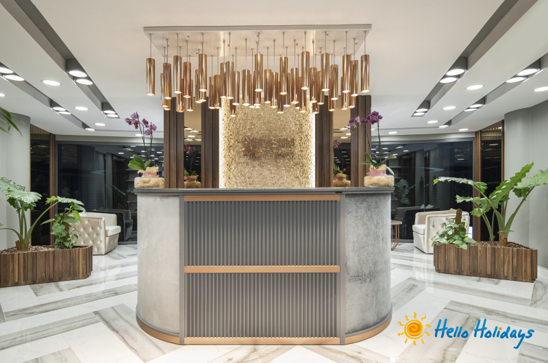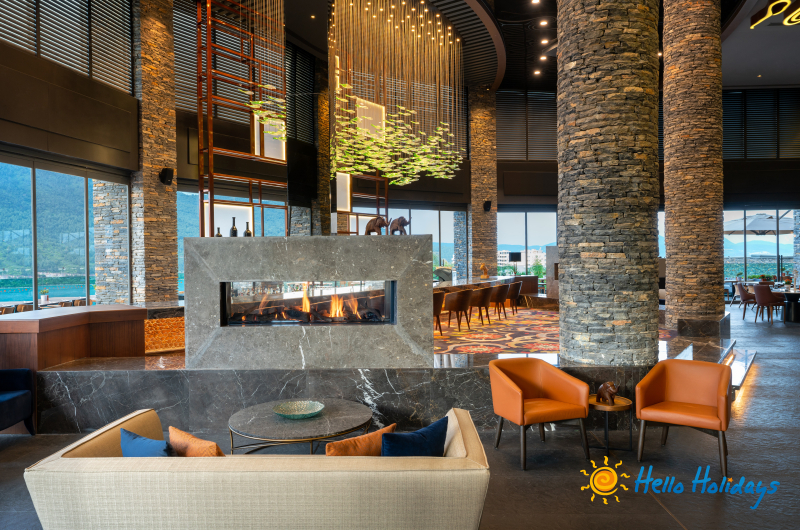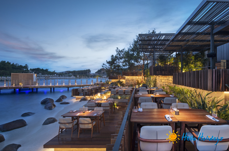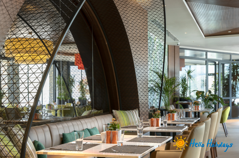 Hotelul își întâmpina clienții cu receptie, lobby, bucătărie specială a-la-carte din 9 bucătarii, cu meniuri variate pentru copii, 14 baruri, patisserie, cofetărie și gelaterie, Aqua park, centru wellness cu o suprafața de 1.200 mp, lecții centru fitness, program extensiv de yoga, antrenor personal pilates, activități speciale, mini-club și loc de joacă pentru copii, parcare, 3 plaje private.